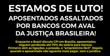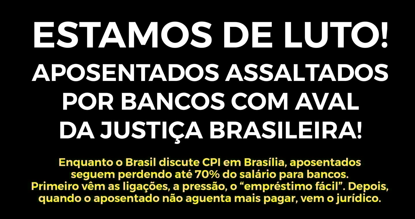 Mesmo com limites legais de desconto e investigações em curso no Congresso, aposentados brasileiros seguem perdendo até 70% da renda para bancos, por meio de empréstimos abusivos e decisões judiciais que autorizam juros de até 400% e descontos diretos em folha. A LEI É CLARA! OS APOSENTADOS NÃO PODEM TER DESCONTOS DE DÍVIDAS NA FOLHA DE PAGAMENTO.