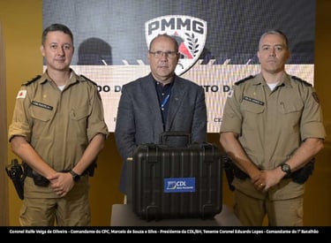Em reunião realizada nesta terça-feira, 24, entre a Câmara de Dirigentes Lojistas de Belo Horizonte (CDL/BH) e o Comando de Policiamento da Capital (CPC) da Polícia Militar de Minas Gerais (PMMG), a entidade realizou a entrega de um drone Matrice 4E para a corporação. O equipamento, que traz capacidades táticas decisivas para a segurança de grandes eventos, atua como um 'olho de águia' multifuncional: seu potente conjunto óptico, com zoom de 112x, permite a identificação precisa de suspeitos e o monitoramento de perímetros mesmo em total escuridão ou à longa distância. Além da visualização, a aeronave opera como uma plataforma de pronta resposta, utilizando telêmetro a laser para geolocalização exata, holofotes para operações noturnas e alto-falantes para a comunicação direta e controle de multidões, garantindo uma cobertura de segurança onipresente e ininterrupta.