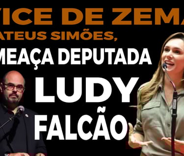 A deputada estadual Lud Falcão (Podemos) denunciou publicamente o vice-governador de Minas Gerais, Mateus Simões (PSD), por suposta ameaça, abuso de poder e comportamento machista. Segundo a parlamentar, o episódio ocorreu após críticas feitas ao governo estadual por seu marido, Luís Eduardo Falcão (sem partido), prefeito de Patos de Minas e presidente da Associação Mineira de Municípios (AMM).