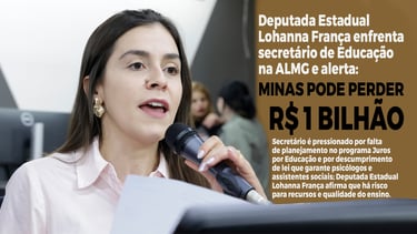 DEPUTADA ESTADUAL LOHANNA FRANÇA cobra planejamento e denuncia despreparo de secretário de Educação de MG