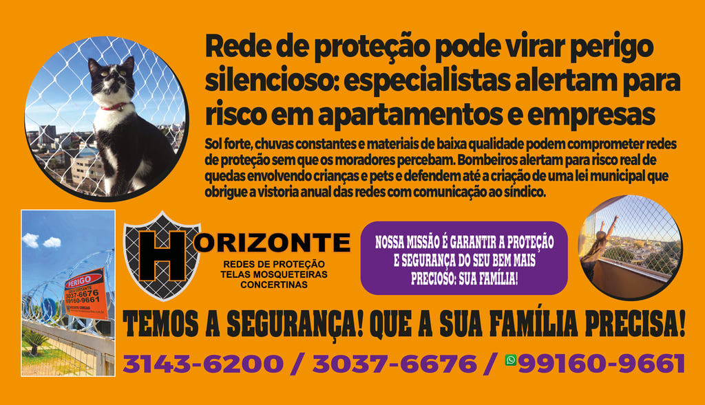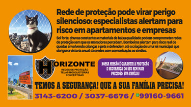Sol forte, chuvas constantes e materiais de baixa qualidade podem comprometer redes de proteção sem que os moradores percebam. Bombeiros alertam para risco real de quedas envolvendo crianças e pets e defendem até a criação de uma lei municipal que obrigue a vistoria anual das redes com comunicação ao síndico.