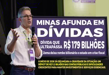O governador Romeu Zema encerra seu segundo mandato deixando Minas Gerais com uma dívida que já ultrapassa R$ 179 bilhões. O cenário, somado ao déficit de R$ 11,3 bilhões no início de 2026, provocou forte reação de parlamentares em diferentes esferas.